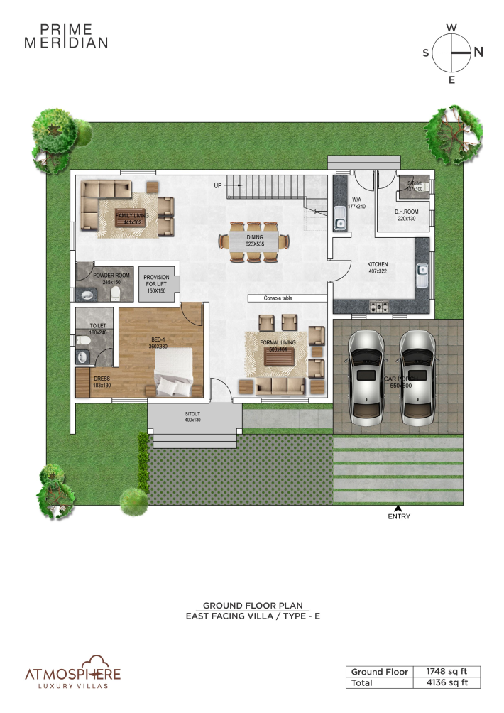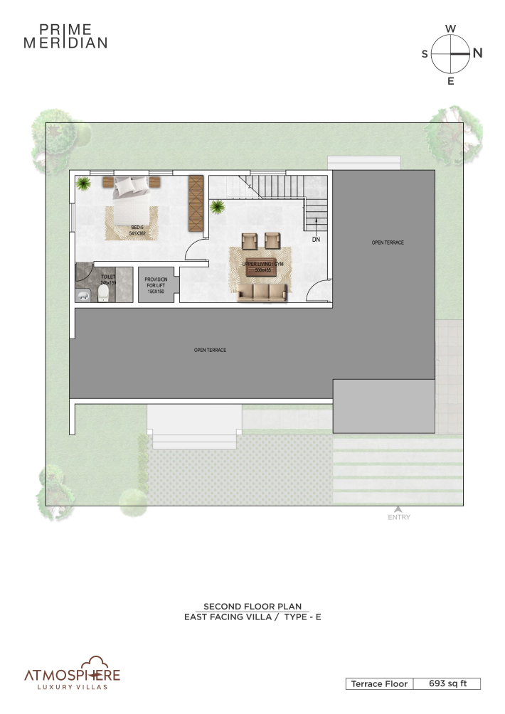 Surrounded by the lush green landscapes of Kochi, each villa within Prime Meridian Atmosphere is meticulously crafted to reflect a sense of elegance and sophistication. The serene environment is complemented by the detailed architecture and innovative design of the villas, ensuring that every moment spent here is one of tranquility and refinement.